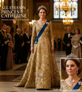 “ALL EYES ON PRINCESS CATHERINE 🔥 Why Her Golden Floral Gown and Queen Mary’s Tiara at the U.S. State Banquet Left Windsor Completely Speechless The moment Princess Catherine stepped into the U.S. State Banquet, the room changed. Cameras froze. Conversations stopped. And for a brief second, even seasoned royal watchers knew — this was not just another glamorous appearance. Wearing a breathtaking golden floral gown, paired with Queen Mary’s legendary sparkling tiara, Catherine looked every inch the future queen. But insiders say the real shock wasn’t the diamonds or the dress — it was the message hidden behind her choice. Royal fashion is never accidental. Every color, every jewel, every historical reference speaks. And this look? It spoke loudly. Sources close to the palace reveal that Catherine’s outfit carried a quiet but powerful signal — one that directly referenced legacy, authority, and her place in the monarchy’s future. What stunned Windsor most wasn’t that she wore the tiara… but why she wore this one, on this night, in front of an American audience. The symbolism reportedly landed hard behind palace doors, with even senior royals left momentarily speechless. This wasn’t just elegance. It was strategy. And the detail everyone missed may explain why Princess Catherine’s role is about to change forever”