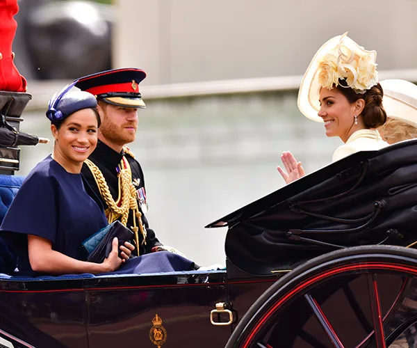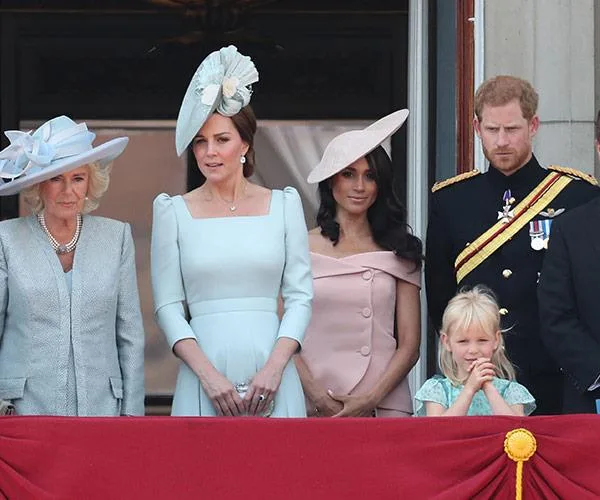 Accompanied by her husband Prince Harry, Duchess Catherine and Duchess Camilla, the Duchess of Sussex smiled and waved to onlookers from her carriage as it travelled down London’s Mall to Buckingham Palace. One year on from her first Trooping, and things have certainly changed a lot.